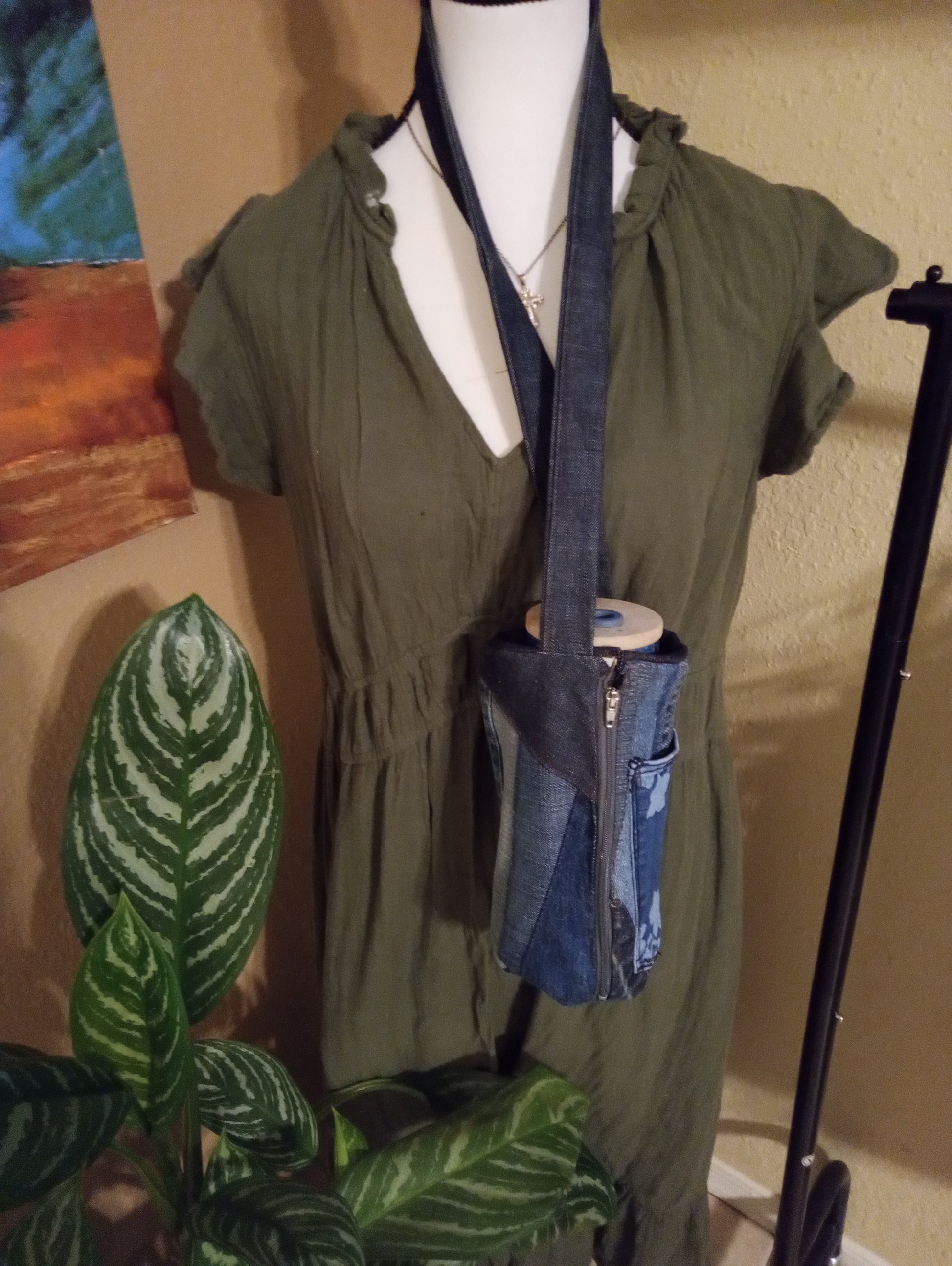 This water bottle fits a standard water bottle that is 10 inches tall and 4 inches in diameter. For easy insertion, there is a zipper on the side. Standards drop length is 23 inches..